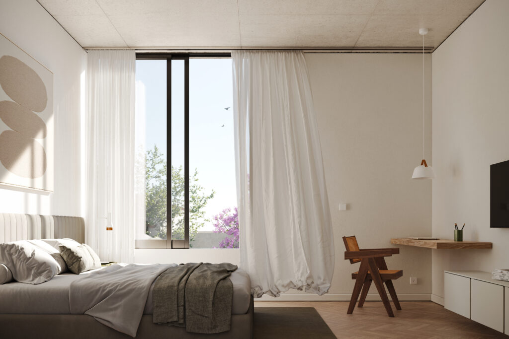 Diseño contemporáneo, luminoso y conectado con su entorno. Con grandes ventanales, balcones integrados y espacios pensados para que la luz y la ventilación natural fluyan.
