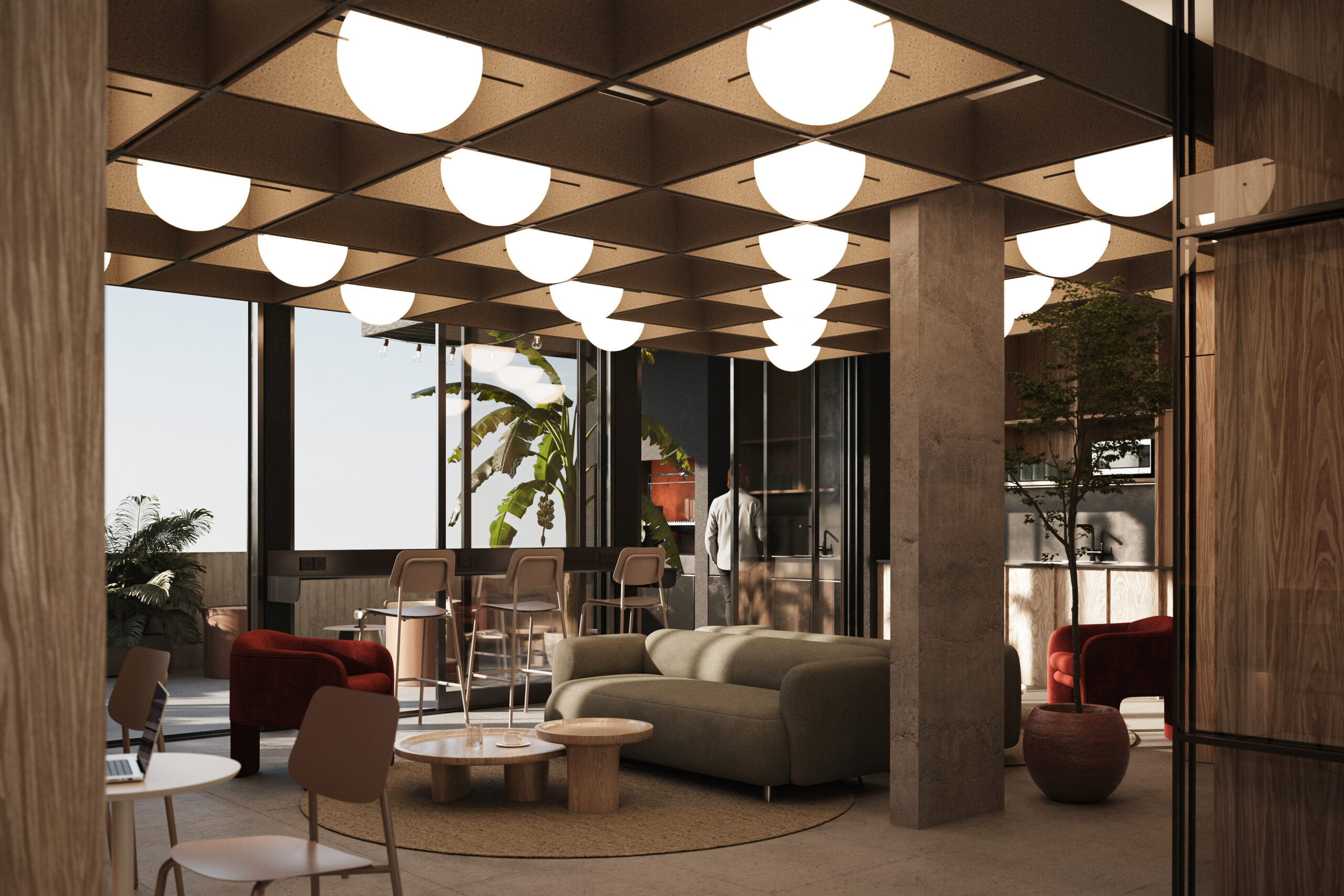 En el 8° piso, los amenities coronan las vistas al verde de Junín: un coworking moderno y luminoso para trabajar con tranquilidad, un SUM con parrilla y cocina equipada para celebrar los encuentros,